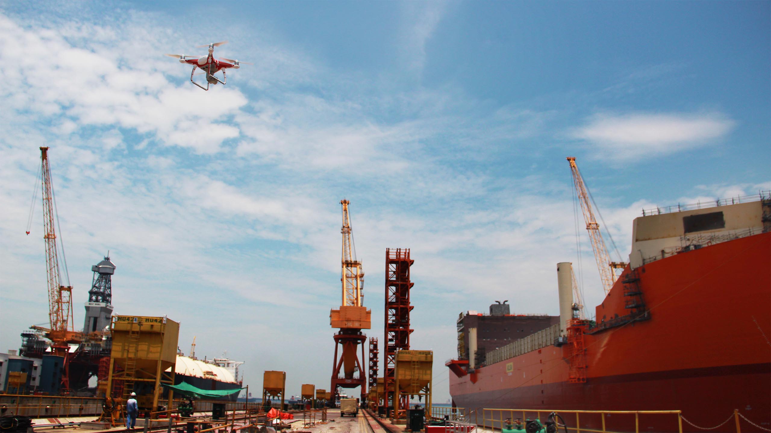 Sembcorp’s brief was simple; capture the entire process of building Heerema Sleipnir – the largest crane vessel in the world. Executing this was far from simple; involving careful planning, long and often odd hours, adverse weather conditions and managing staggering amounts of footage from various equipment including drones and 24/7 camera pods.